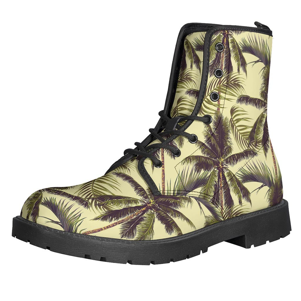 Embrace your inner free spirit with these vintage-inspired palm tree pattern print leather boots from Gear Frost. These lightweight boots are perfect for the adventurous hippie soul who loves to roam from music festivals to outdoor markets, all while staying comfortable and fashionable. The unique palm tree pattern adds a touch of bohemian flair to any outfit, making them a must-have for any hippie fashionista. Whether you're dancing in the sun at a summer concert or exploring nature's wonders, these boots are sure to be your go-to footwear for any hippie adventure.