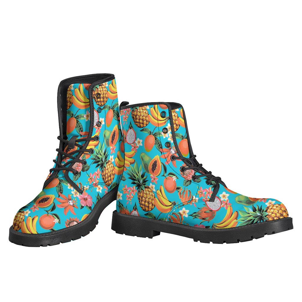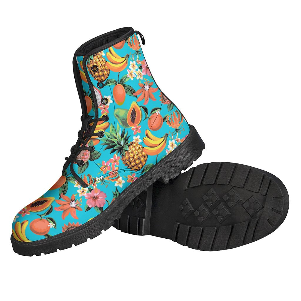 Channel your inner free spirit with these Vintage Tropical Fruits Pattern Print Leather Boots from Gear Frost. Made for the modern-day hippie, these lightweight boots combine style and comfort for your everyday adventures. The unique tropical fruits pattern adds a splash of color and personality to any outfit, while the high-quality leather construction ensures durability and long-lasting wear. Whether you're hitting up a music festival or simply strolling through town, these boots are the perfect addition to your bohemian wardrobe. Embrace your carefree vibes and step out in style with these hippie-inspired leather boots.