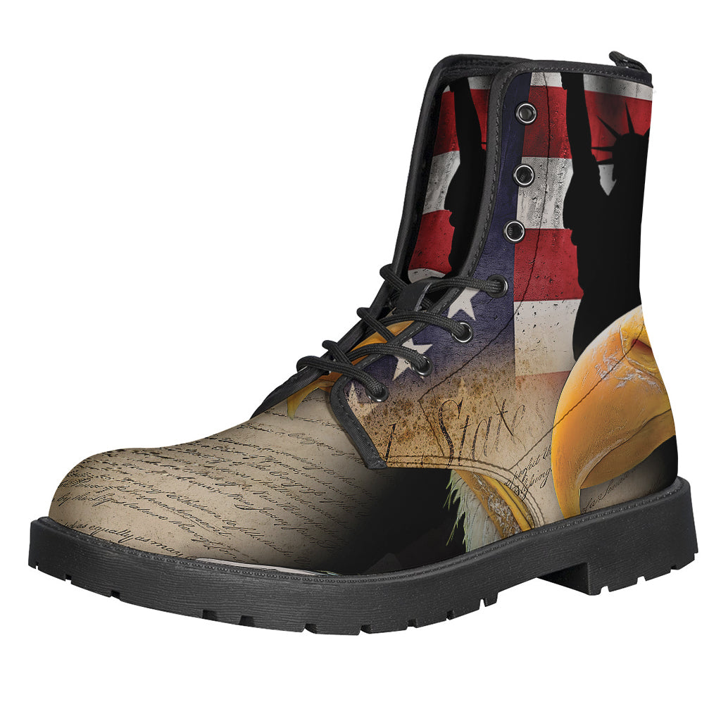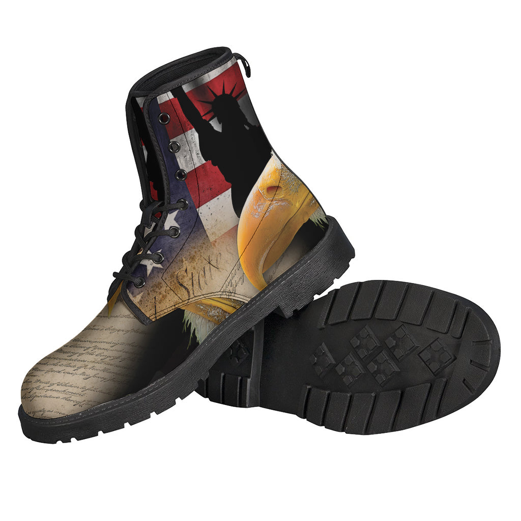 Embrace your inner free spirit with these Hippies Leather Lightweight Boots. Perfect for wandering through festivals, exploring nature, or simply adding a touch of bohemian flair to your everyday attire, these boots feature a unique American Dream of Liberty print that celebrates individualism and creativity. Made from high-quality leather, they are durable yet lightweight, making them ideal for all-day wear. With their comfortable fit and stylish design, these boots are sure to become a staple in your wardrobe. Let your wild side shine with these Hippies Leather Lightweight Boots.