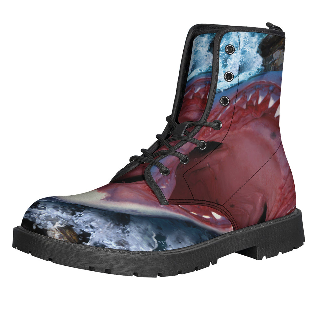 Walking on Sunshine: Hippie Chic Angry Shark Print Leather Boots - 3