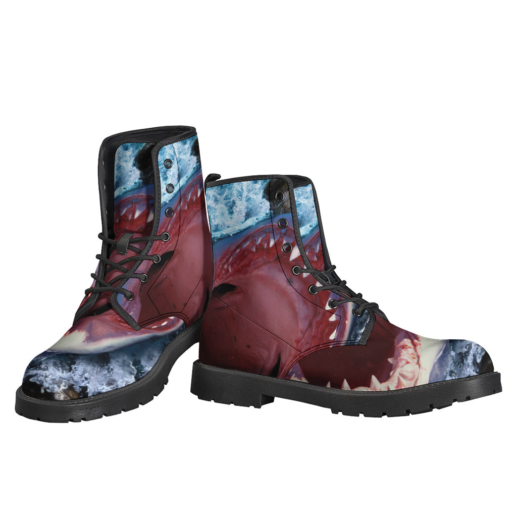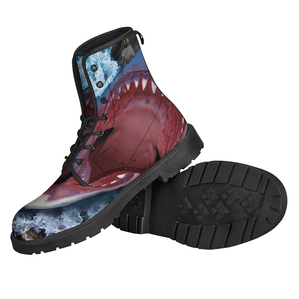 Walking on Sunshine: Hippie Chic Angry Shark Print Leather Boots - 1
