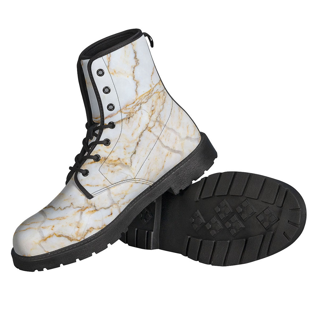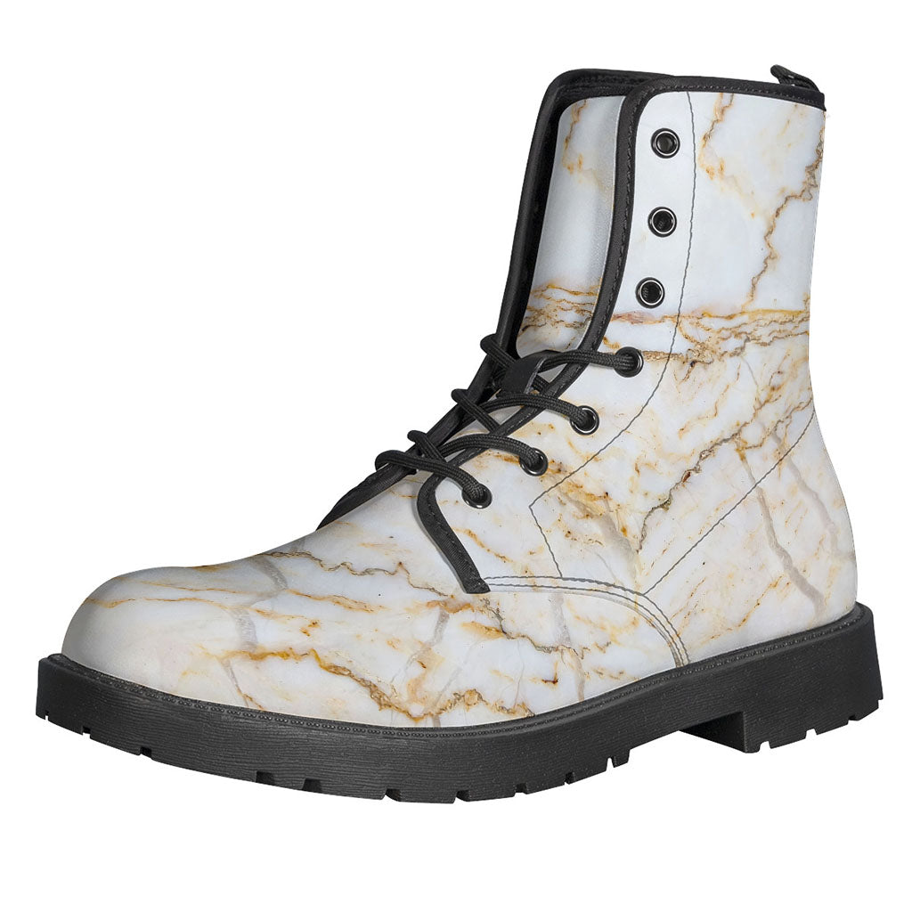 White Brown Grunge Marble Print Leather Boots for the Hippie Soul - 1