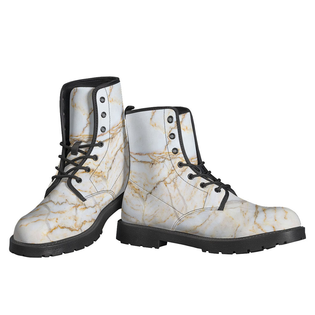 White Brown Grunge Marble Print Leather Boots for the Hippie Soul