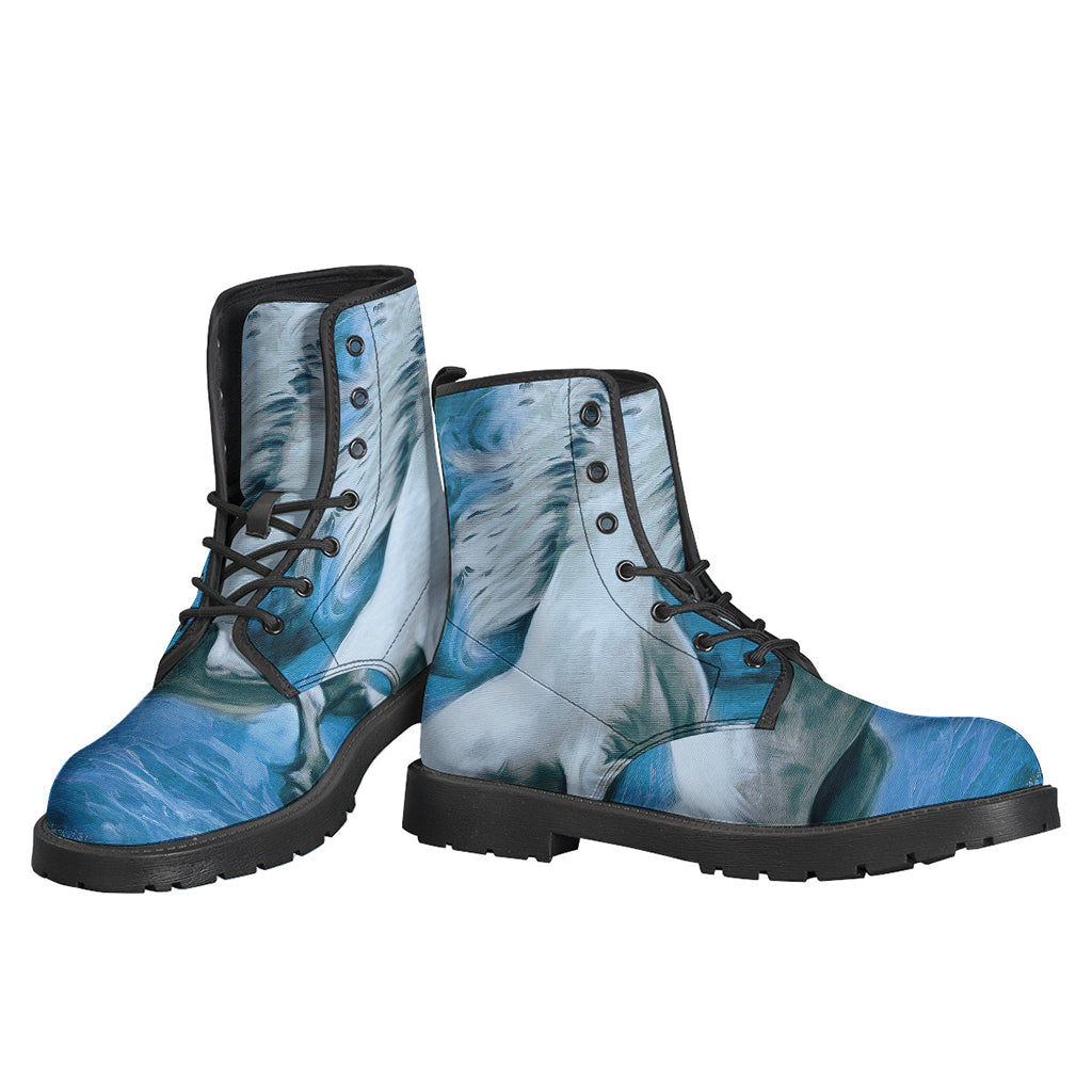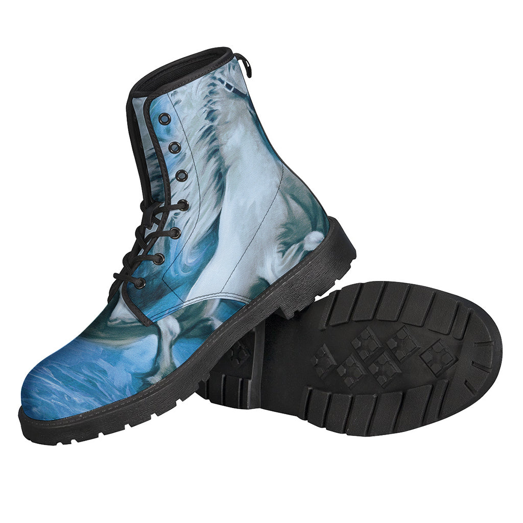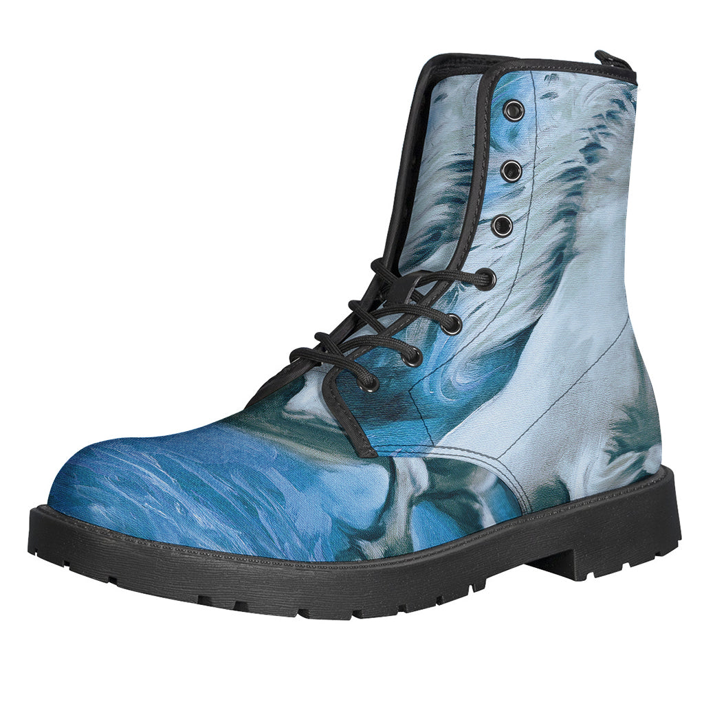 These Leather Lightweight Boots with a hippie flair are perfect for those who want to embrace the free-spirited style of the 1960s and 1970s. The boots feature a unique White Horse painting print on the leather, adding a touch of whimsy and artistic charm. Made from high-quality materials, these boots are not only stylish but also durable and comfortable to wear. Whether you're dancing at a music festival or strolling through the city streets, these boots will be sure to turn heads and add a bohemian touch to your outfit. Embrace your inner hippie with these Leather Lightweight Boots and step out in style.