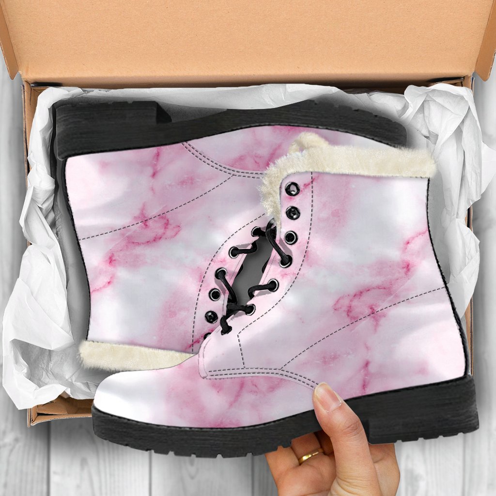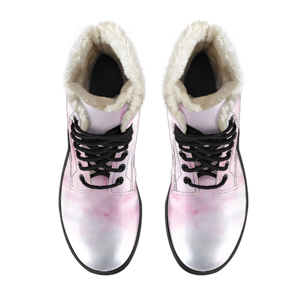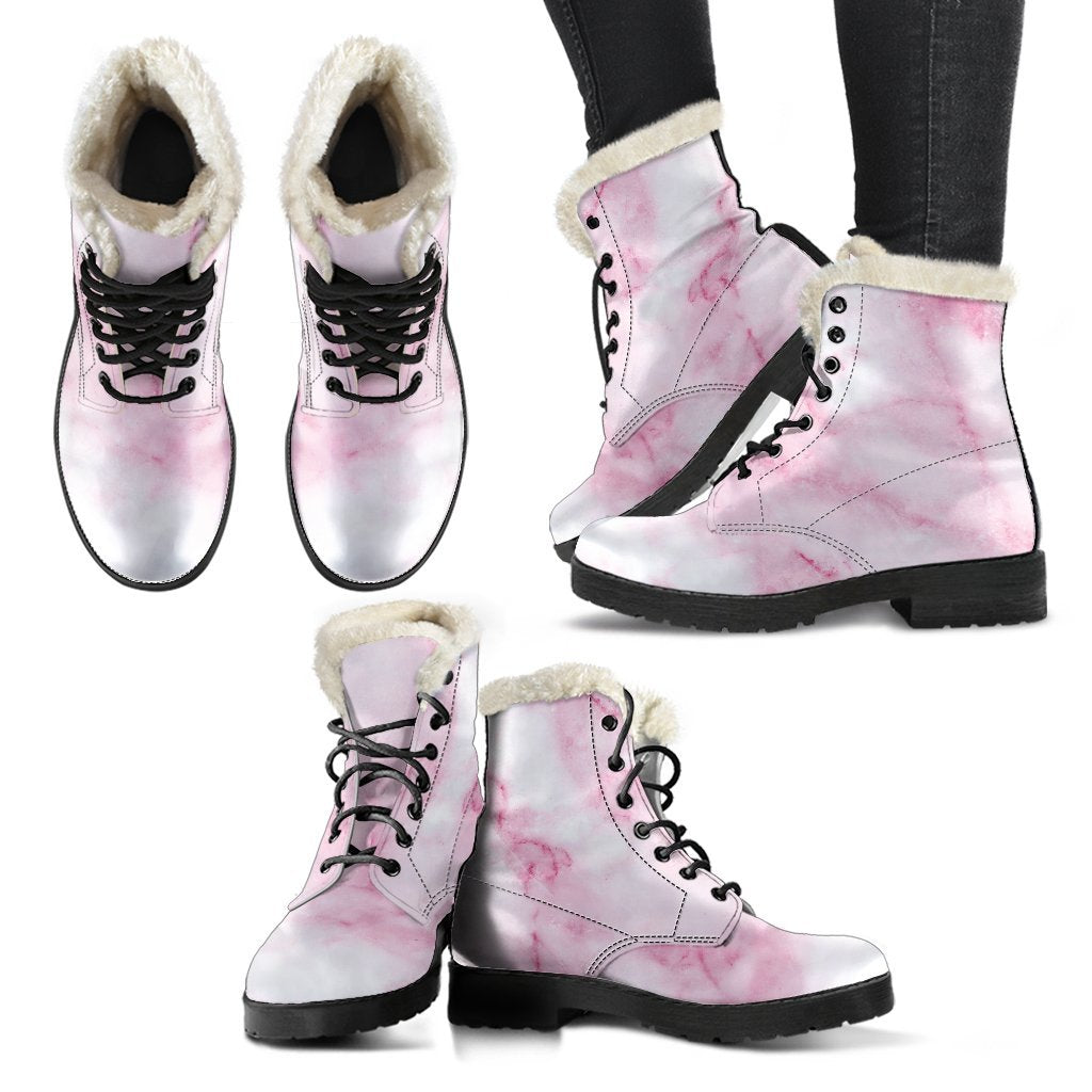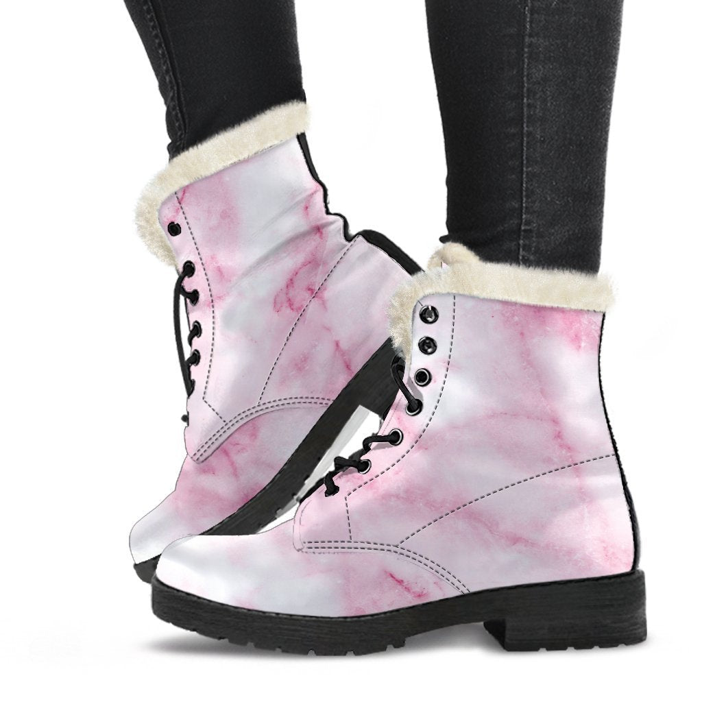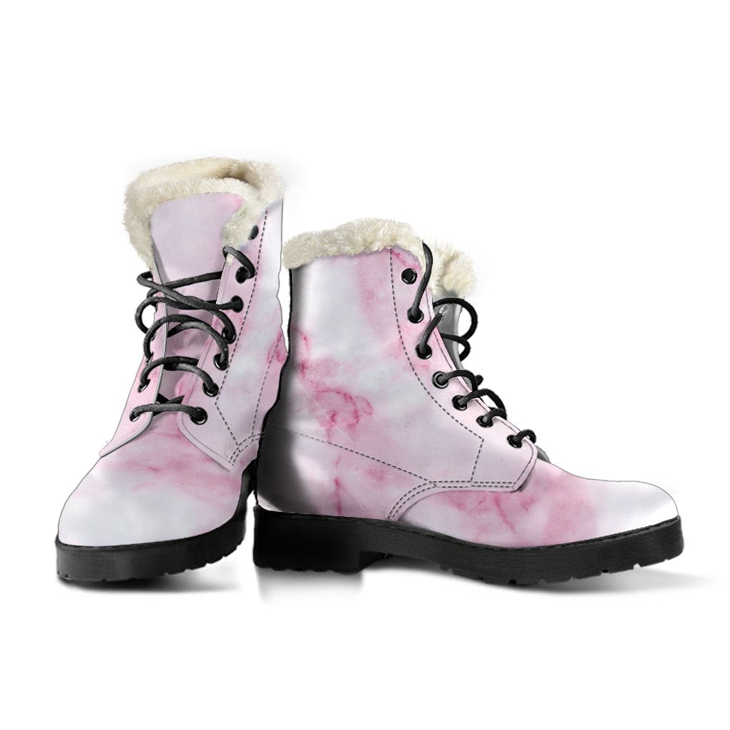 Get ready to strut your stuff in these ultra-hip and stylish Faux Fur Leather Boots perfect for any modern-day hippie. These boots feature a unique white pink marble print that adds a funky and fun twist to your outfit. The faux fur trim offers a cozy and comfortable feel, while the sleek leather material provides durability and style. Whether you're headed to a music festival or just strolling around town, these boots are sure to turn heads and make a statement. Embrace your inner bohemian spirit with these must-have hippie boots.