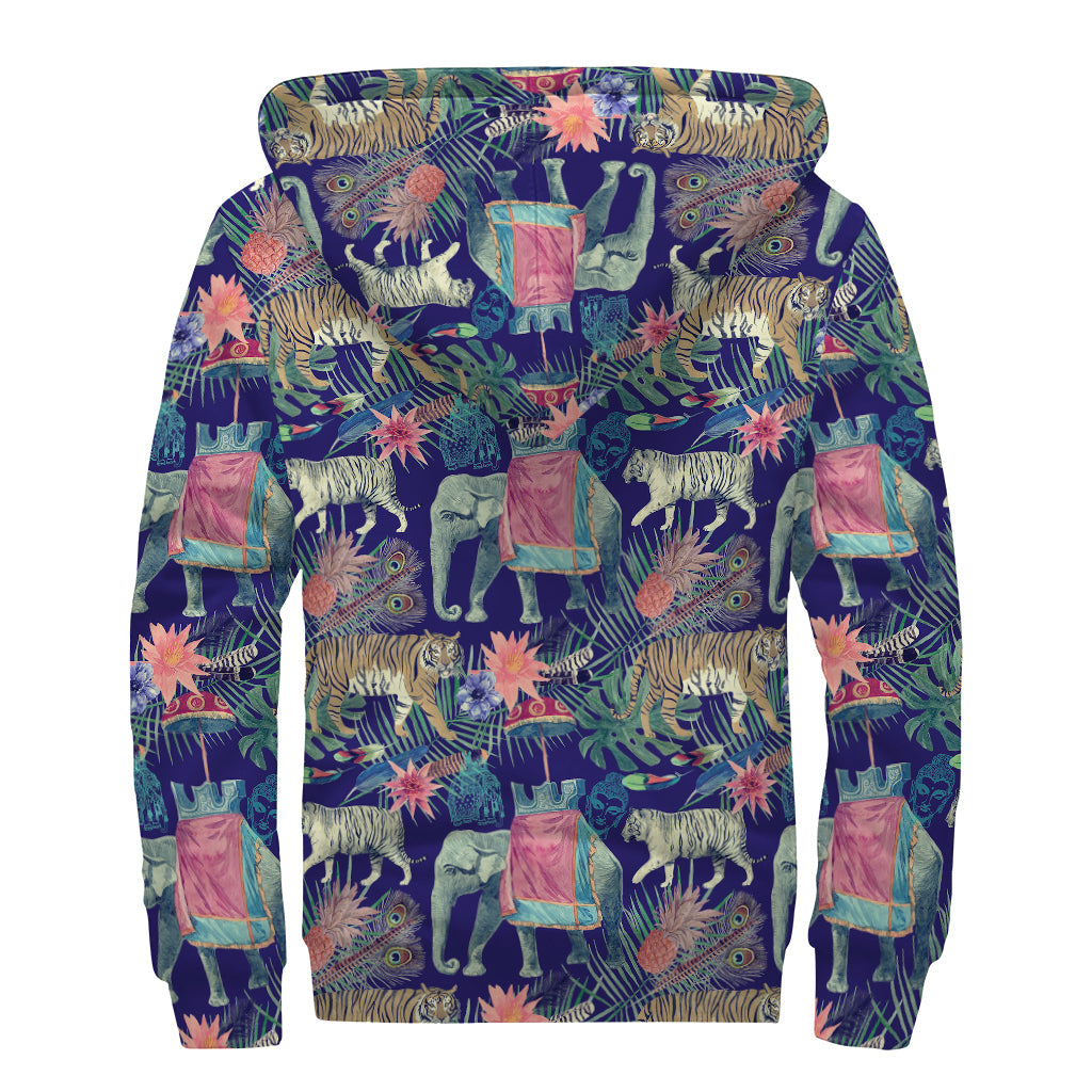 This Sherpa Lined Zip Up Hoodie is a perfect addition to any hippie's wardrobe. Featuring a unique Asian elephant and tiger print, this hoodie exudes a sense of adventure and connection to nature. The cozy Sherpa lining will keep you warm and comfortable during those chilly nights around the campfire or at music festivals. The zip-up design makes it easy to layer over your favorite tie-dye shirt or boho dress. Embrace your free spirit and bohemian style with this hippie-inspired hoodie.