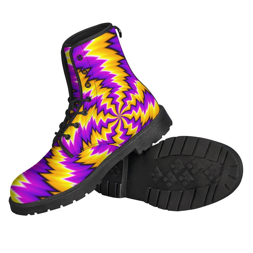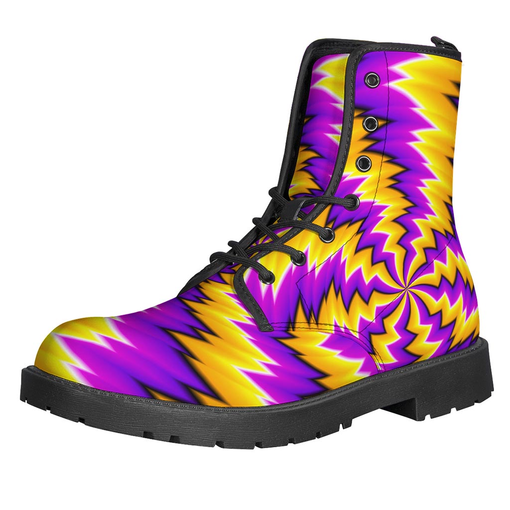 Get ready to take a step back in time with these Hippies Leather Lightweight Boots! Featuring a vibrant yellow vortex design that creates an optical illusion as you move, these boots are sure to make a statement wherever you go. Made from high-quality leather, they are not only stylish but also durable and comfortable to wear. Whether you're heading to a music festival or just looking to add a touch of hippie flair to your everyday wardrobe, these boots are the perfect choice. Embrace your inner free spirit and step out in style with these unique and eye-catching Hippies Leather Lightweight Boots!