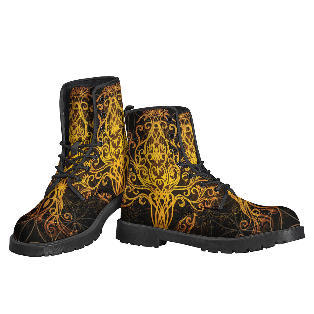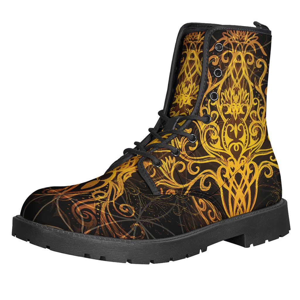 These Leather Lightweight Boots are perfect for hippies who want to add a touch of style and symbolism to their footwear. The boots feature a unique Yggdrasil Tree of Life print on the leather, which is a powerful symbol in Norse mythology representing the interconnectedness of all living things.