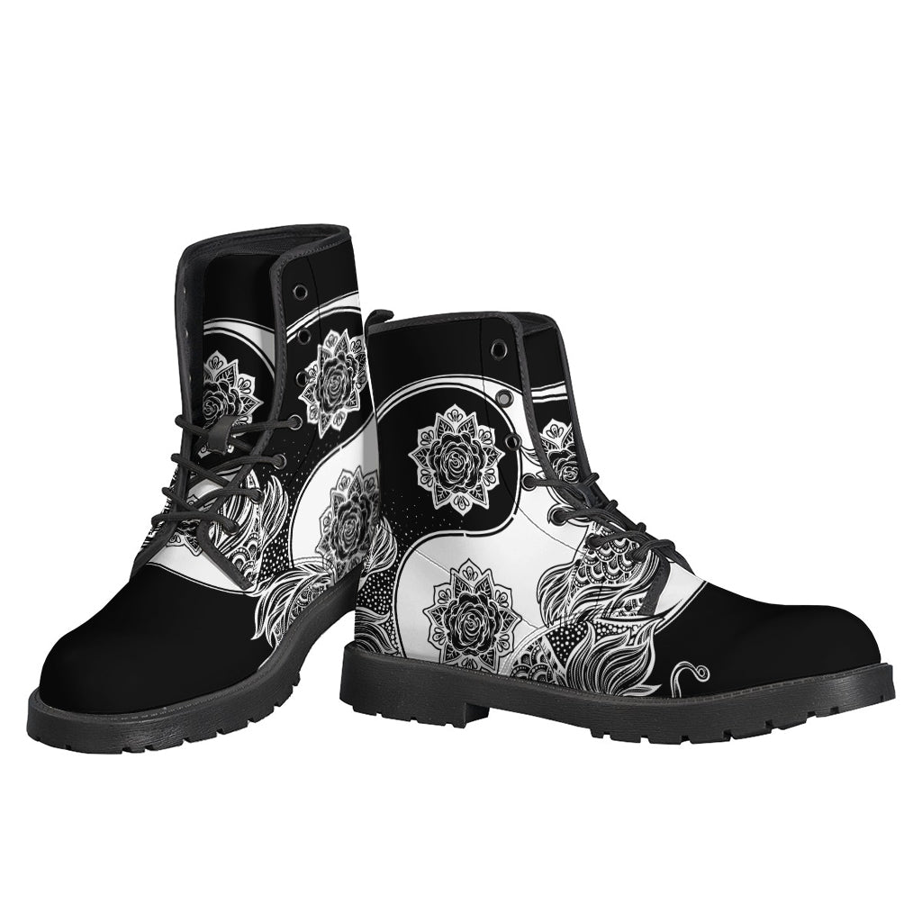 These Leather Lightweight Boots are perfect for the free-spirited hippies who want to incorporate a touch of bohemian style into their everyday wardrobe. Featuring a vibrant yin and yang koi carp fish print, these boots are eye-catching and unique. The leather material ensures durability and comfort, while the lightweight design makes them ideal for all-day wear. Pair these boots with flowy skirts, bell-bottom jeans, or your favorite tie-dye top for the ultimate hippie-chic look. Whether you're heading to a music festival or just stepping out for a casual day out, these boots are sure to make a statement and reflect your carefree spirit.