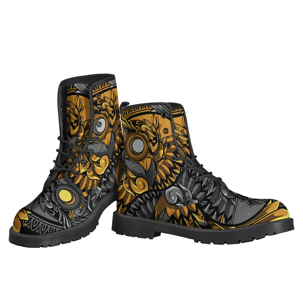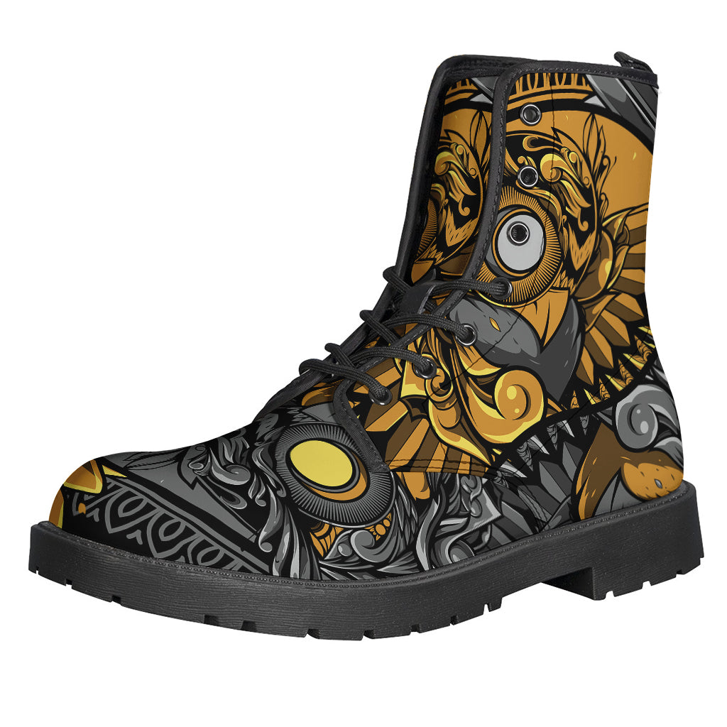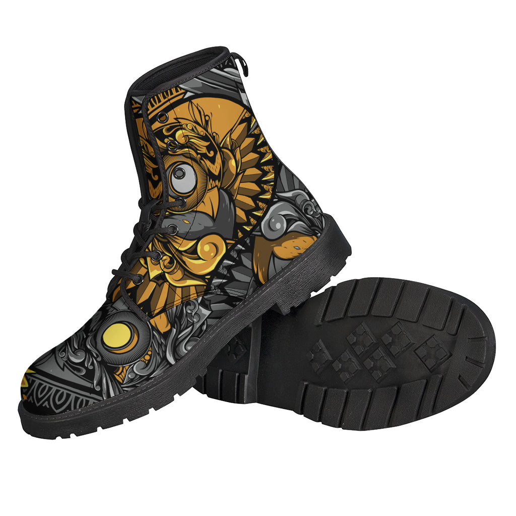 Yin Yang Owl Print Leather Boots for the Free-Spirited Hippie