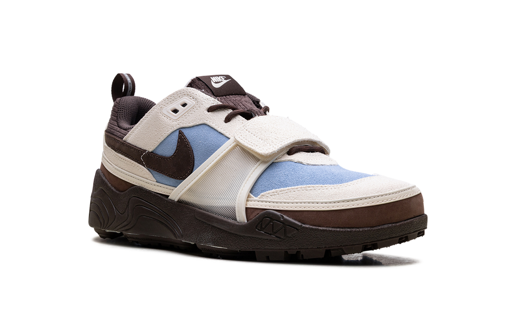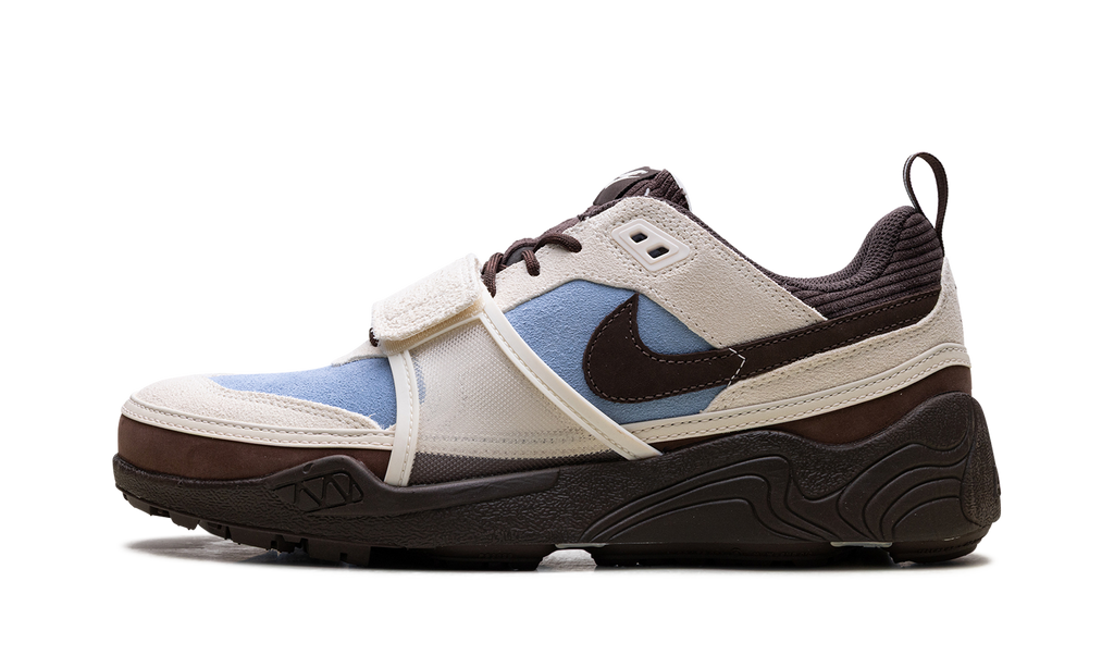 Make a bold statement with the distinctive style of the Travis Scott x Nike Zoom Field Jaxx "Leche Blue." The unique Leche Blue colorway, combined with premium suede and a striking midfoot strap, sets this sneaker apart. Featuring subtle Cactus Jack branding, this design captures Travis Scott's signature aesthetic, offering a versatile and fashion-forward option that stands out from the crowd.